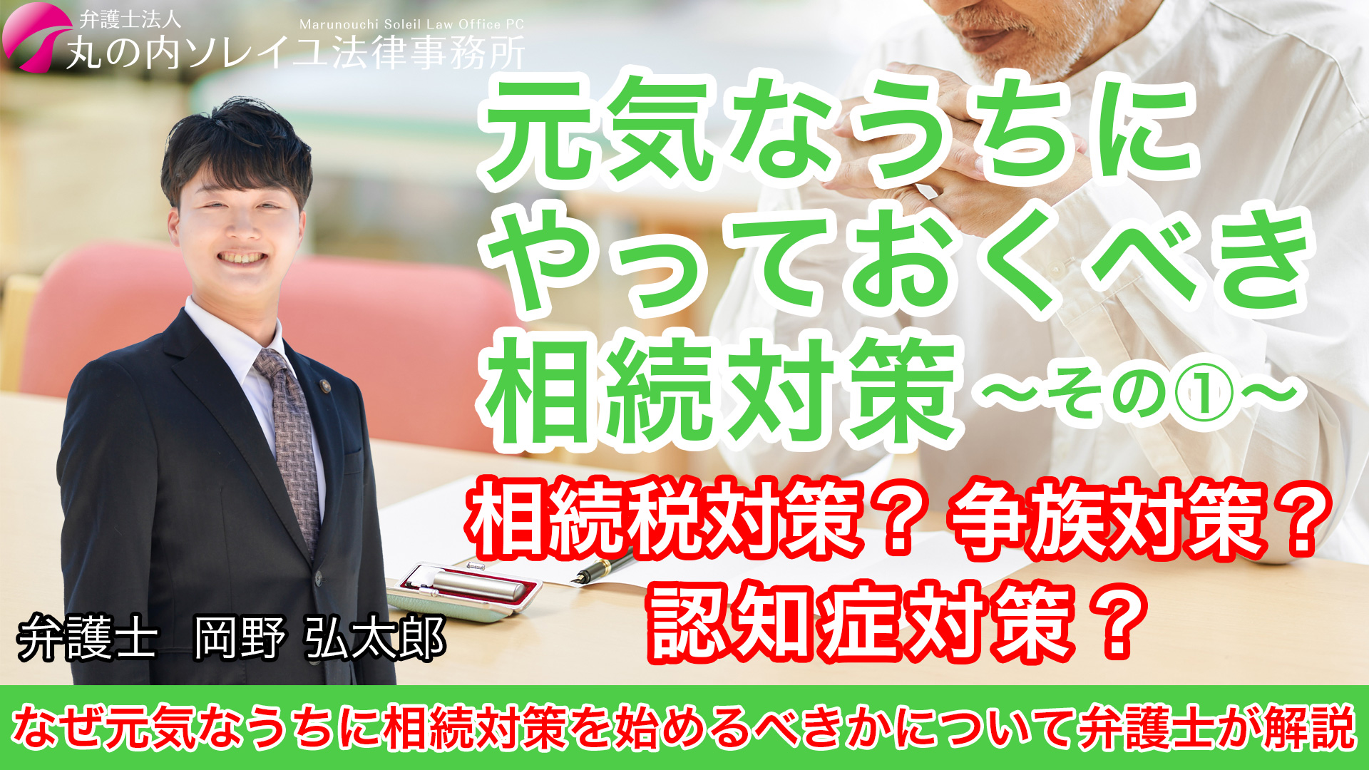 2024.09.13 2025.10.30 YouTube動画「元気なうちにやっておくべき相続対策~その1~」を公開しました YouTube動画「元気なうちにやっておくべき相続対策~その1~|認知症対策・相続税対策・争族対策」を公開しました。 岡野弁護士が相続対策について解説していますので、是非ご覧ください。 ↓動画はこちら https://youtu.be/7pT0mj_xUII お問い合わせはこちら YouTube動画「遺産分割手続きの流れについて弁護士が解説」を公開しました 前の記事 YouTube動画「認知症の父や母が遺した遺言書はどうなる?」を公開しました 次の記事